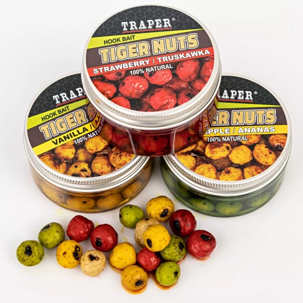 Traper Tigrí orech sú prírodné tigrie orechy namočené v aromatickom dipe, starostlivo pripravené na okamžité použitie. Nástraha obohatená o extrakt stimuluje aktivitu rýb a zvyšuje intenzitu záberov. Pridaná aróma uľahčuje kŕmiacim sa rybám lokalizáciu návnady vo vode.